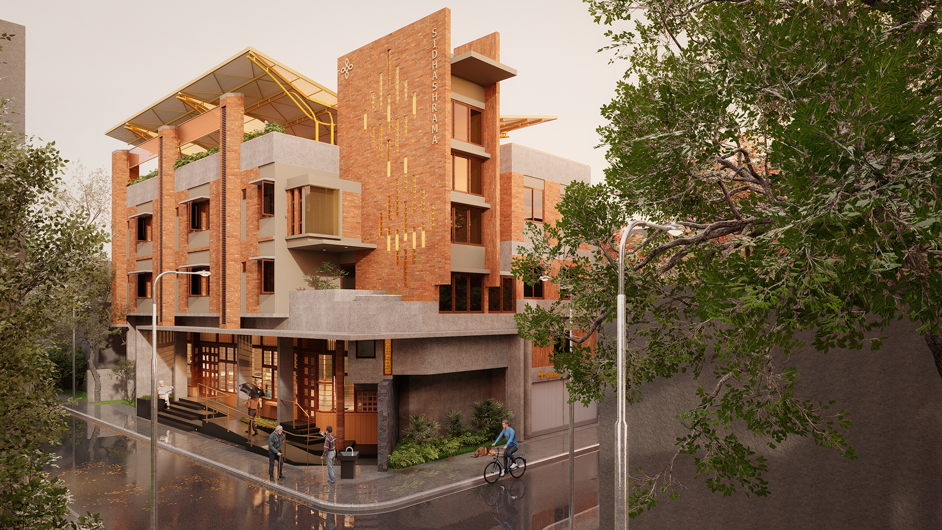 The space also serves the homeless, thoughtfully integrating their needs into the daily life of the ashram. This approach reinforces the commitment to compassion and care, making the ashram a true refuge for those in need. The upper floors are dedicated to elderly residents, featuring terraces that provide opportunities for socializing, recreation, and dining—creating a warm, supportive environment where residents can build meaningful connections.